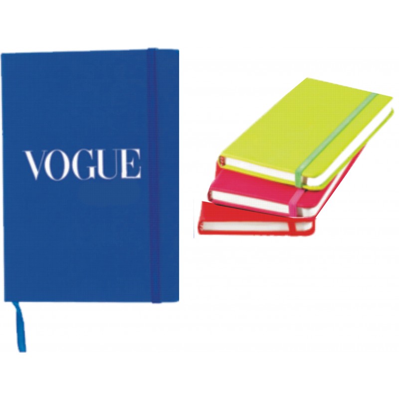 LIBRETA MONZE, PERSONAL PARA BITACORA CON 90 HOJAS REYADAS CON CINTA ELASTICA PARA SUJETAR CUBIERTA TAMAÑO 14 x 21 EN 6 COLORES DIFERENTES, IMPRESION SERIGRAFIA O DTF